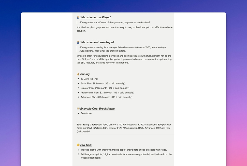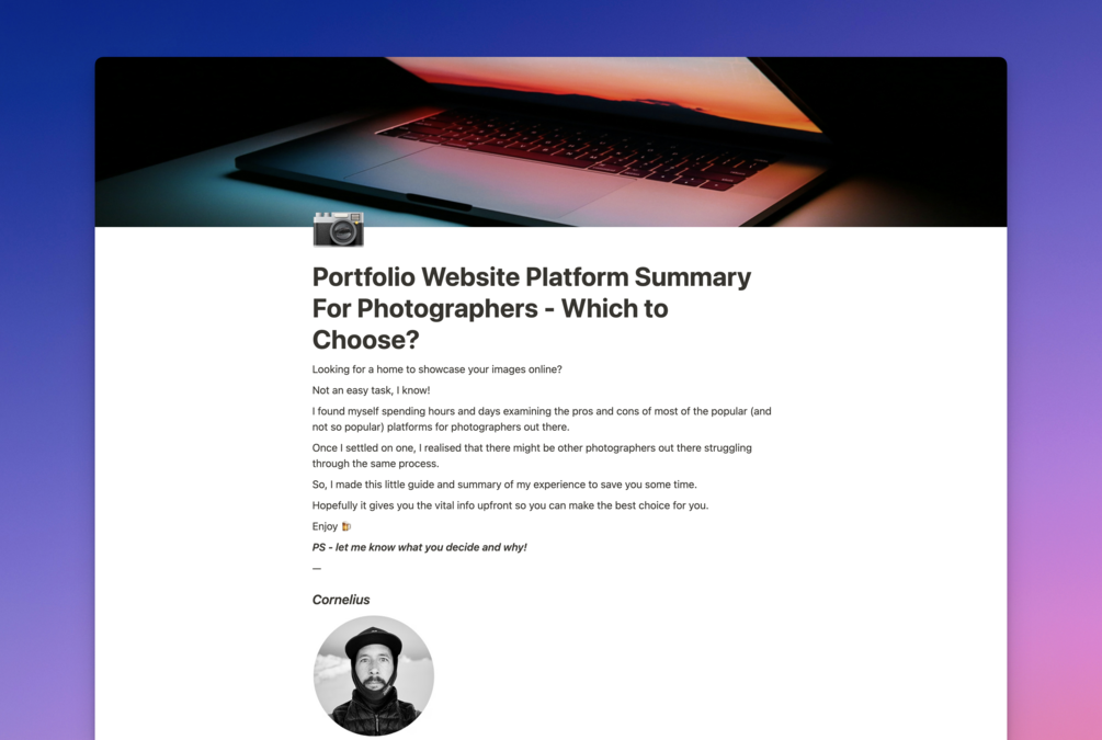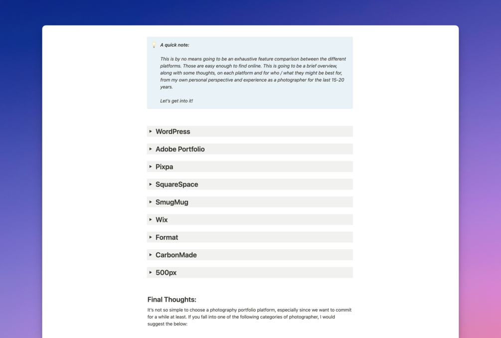 I found myself spending hours and days examining the pros and cons of most of the popular (and not so popular) platforms for photographers out there.